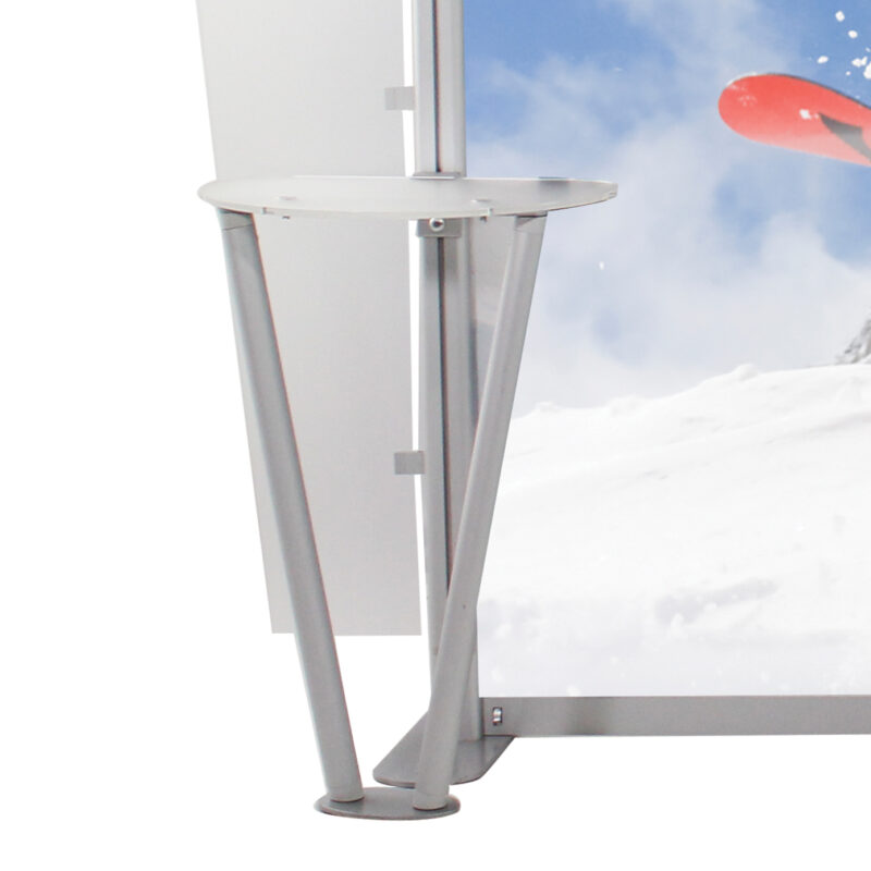 This contemporary, high-tech trade show display system requires no tools, making set up and dismantling much easier and 50% faster than similar exhibits. No tools necessary!