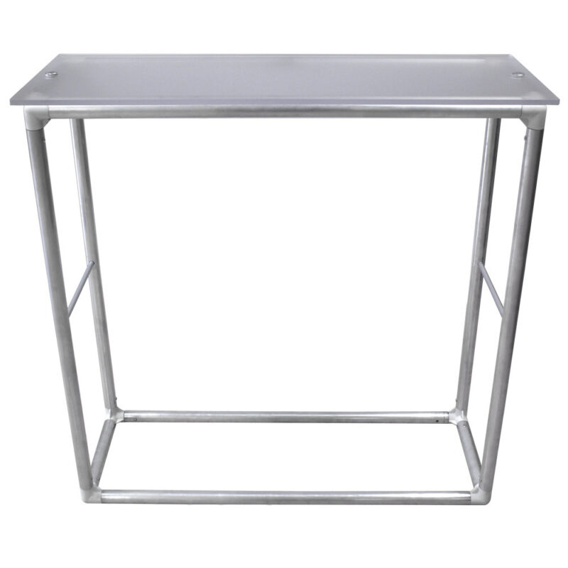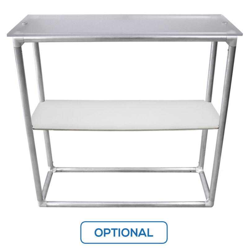 Leave your tools at home because this unit is completely toolless. Push button snaps connect the lightweight aluminum frame. Place the frame into the fabric piece, cover and pull both zippers toward the back to enclose unit. Attach counter top. Graphics available on front, back, sides and top. See your printed graphic through the frosted acrylic counter top piece! This fully enclosed unit unzips to make for a convenient spot to hide stuff. Carry case included.